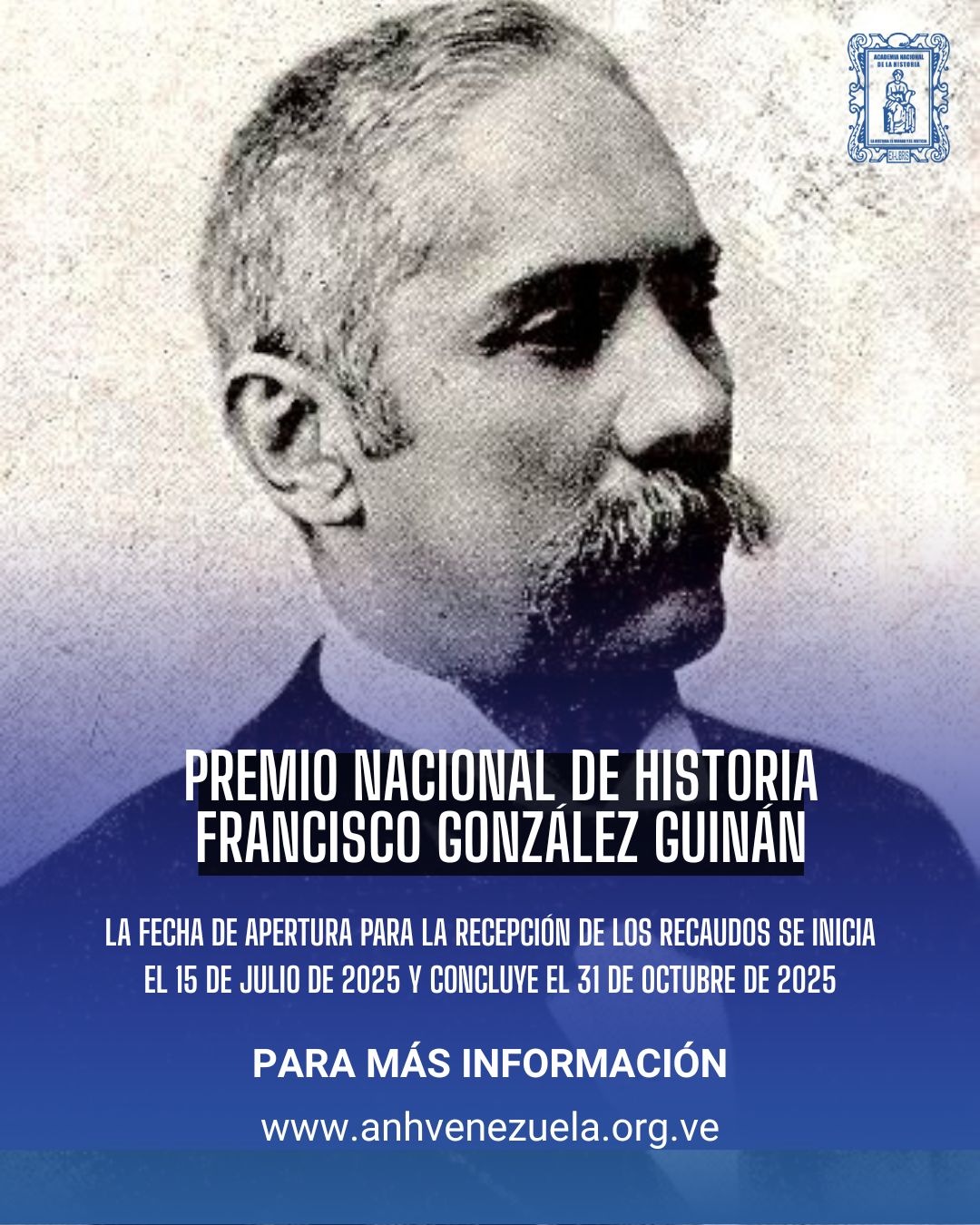 Leer aquí bases del premio: https://www.anhvenezuela.org.ve/premio-nacional-de-historia-francisco-gonzalez-guinan/